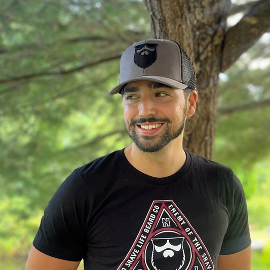 No Shave Life's OG Beard Logo Mesh Trucker - Dark Grey/Black