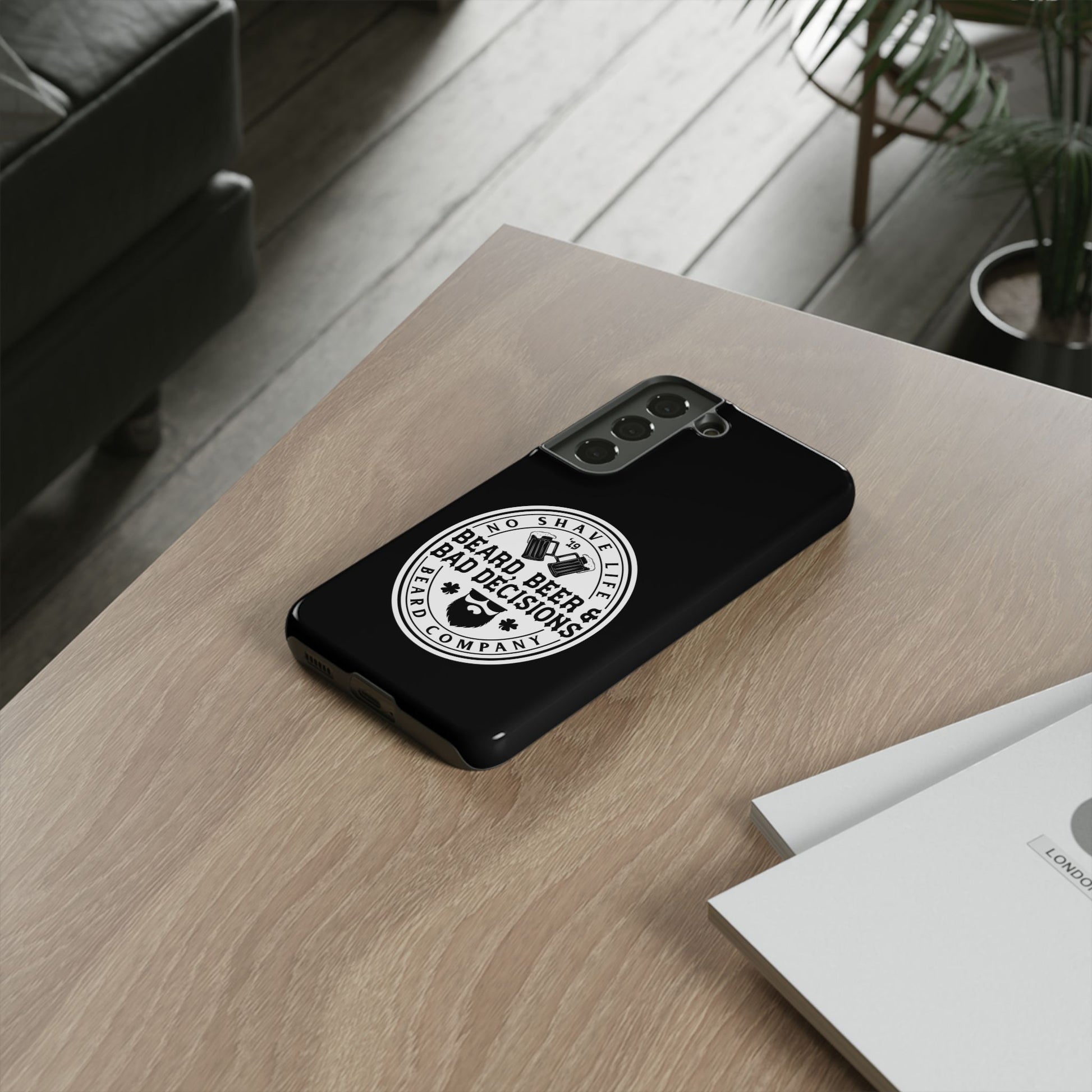 Protect your phone in style with the Beard, Beer & Bad Decisions Hard Phone Case. Designed for durability and function, this case provides premium protection while showcasing a bold and unique design.